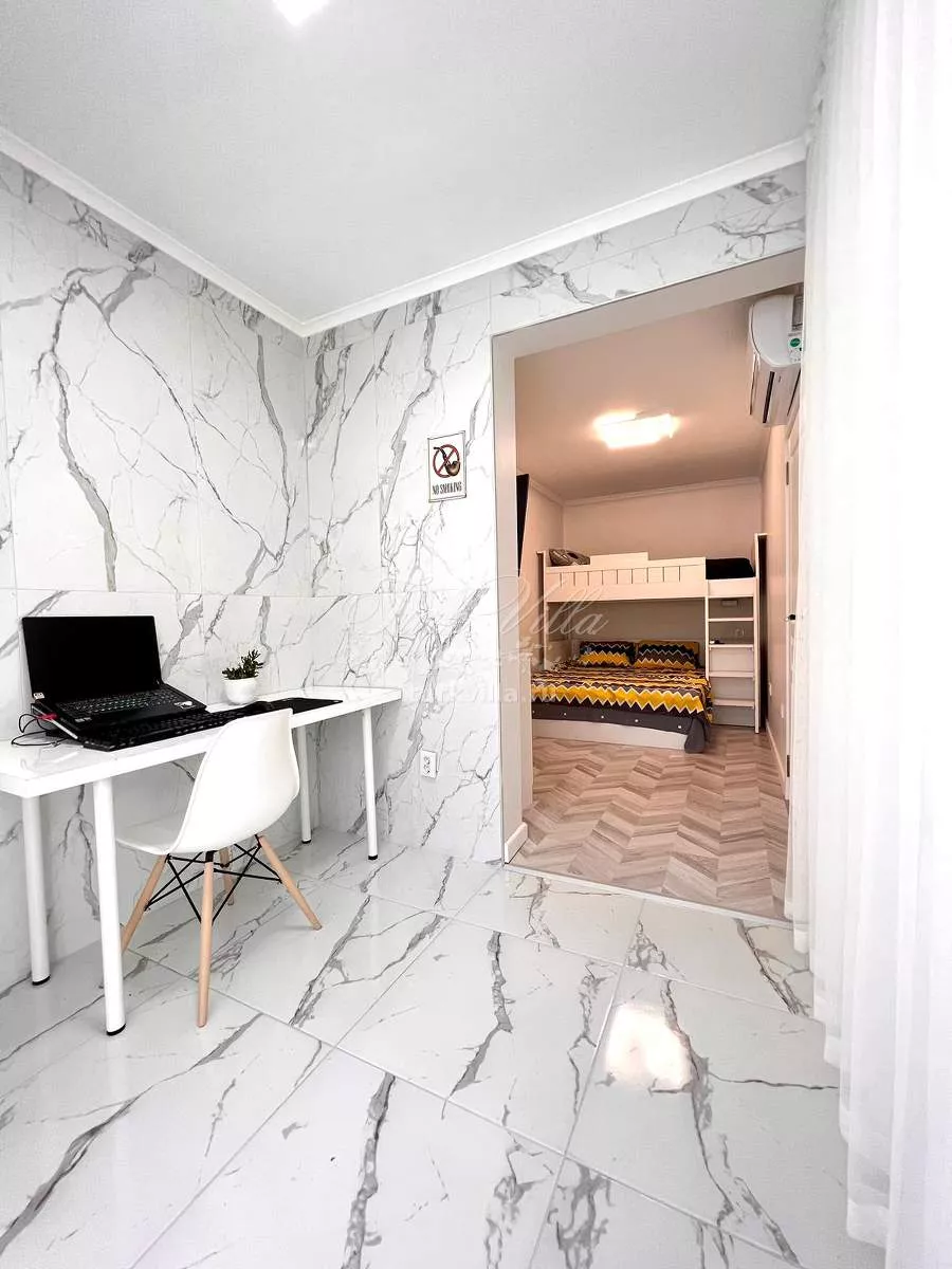 Дуплекс занимает два уровня (1–2 этаж) и имеет площадь 160–180 м². В квартире выполнен качественный современный ремонт с использованием долговечных материалов. Установлены полы с подогревом, обеспечивающие комфорт в любое время года. Особенностью объекта являются два отдельных входа, что удобно для большой семьи, гостей или раздельной сдачи в аренду.