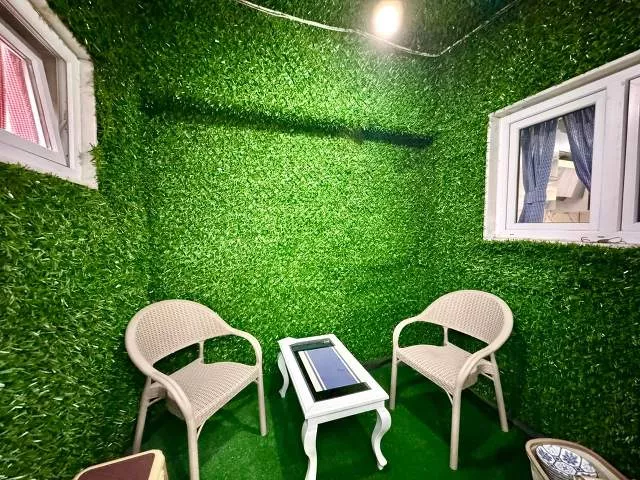 Особое внимание привлекает терраса с декоративной подсветкой «звёздное небо» — атмосферное место для отдыха вечерами. Также предусмотрен отдельный балкон для курения.